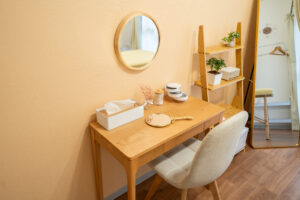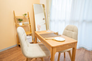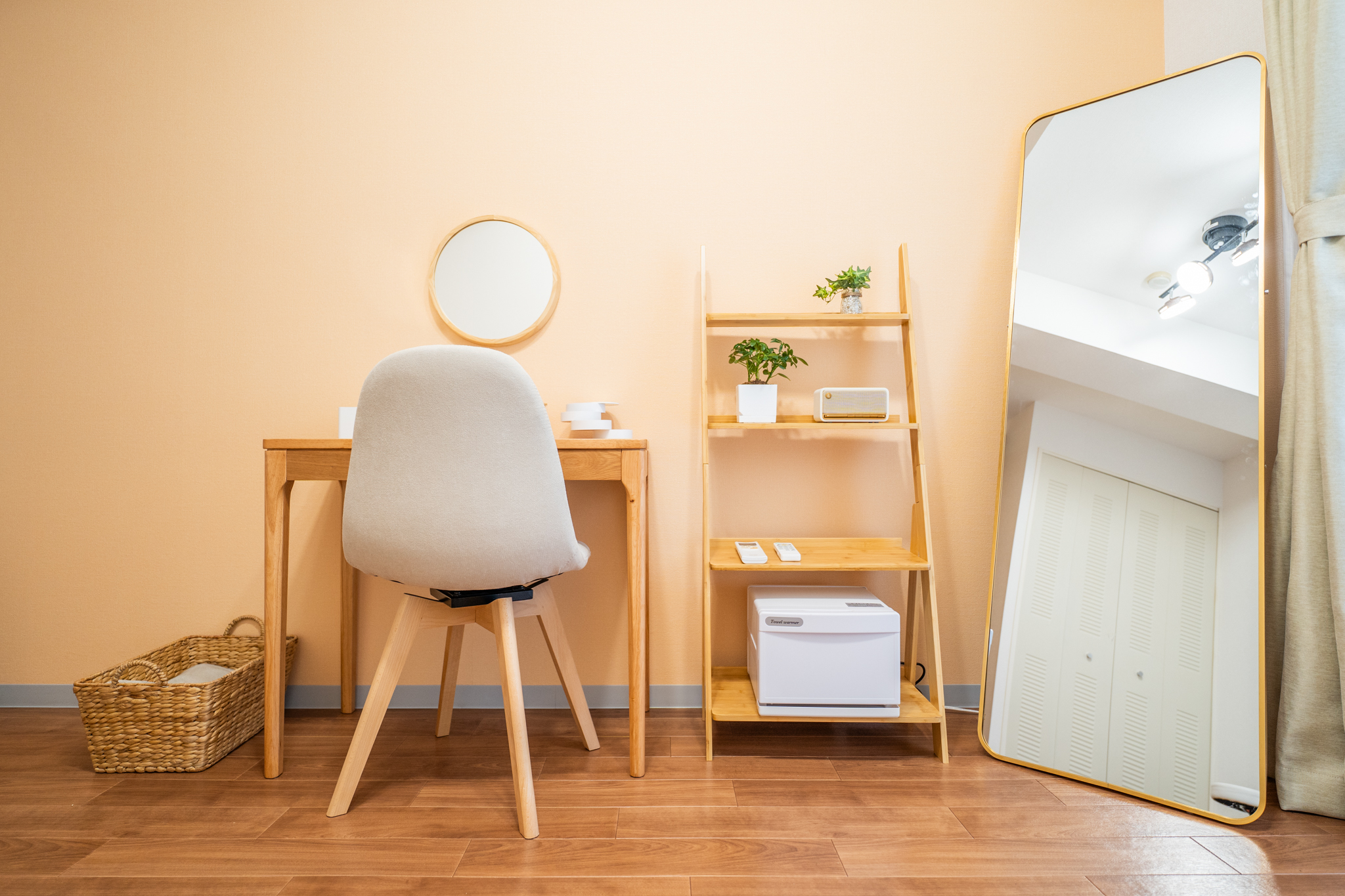 空気清浄機兼加湿機 / 調光式ライト / 折りたたみテーブル / 折りたたみ椅子(2脚)/ 全身鏡 / 女優ミラー / ドライヤー / 電子レンジ / 湯沸かしポット / 冷蔵庫 / 掃除機 / 2wayヘアアイロン / 手元ライト