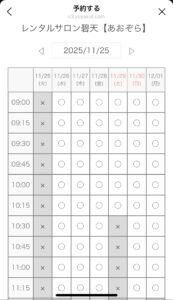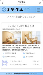 ②予約するサロンを選び、日時と利用時間を選びます。(〇からお選びください)