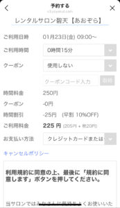 ④予約が完了すると、予約内容・ご利用案内などの詳細が書かれてるメッセージが届くので、それを確認します。