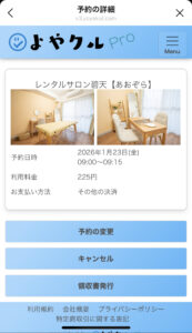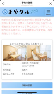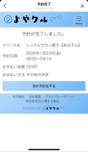 paypay決済後、決済画面から自動的に予約ページに戻る事で予約が完了します。