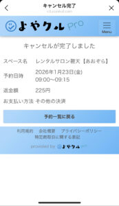 キャンセルのした場合は、キャンセル完了のメッセージが届きます。